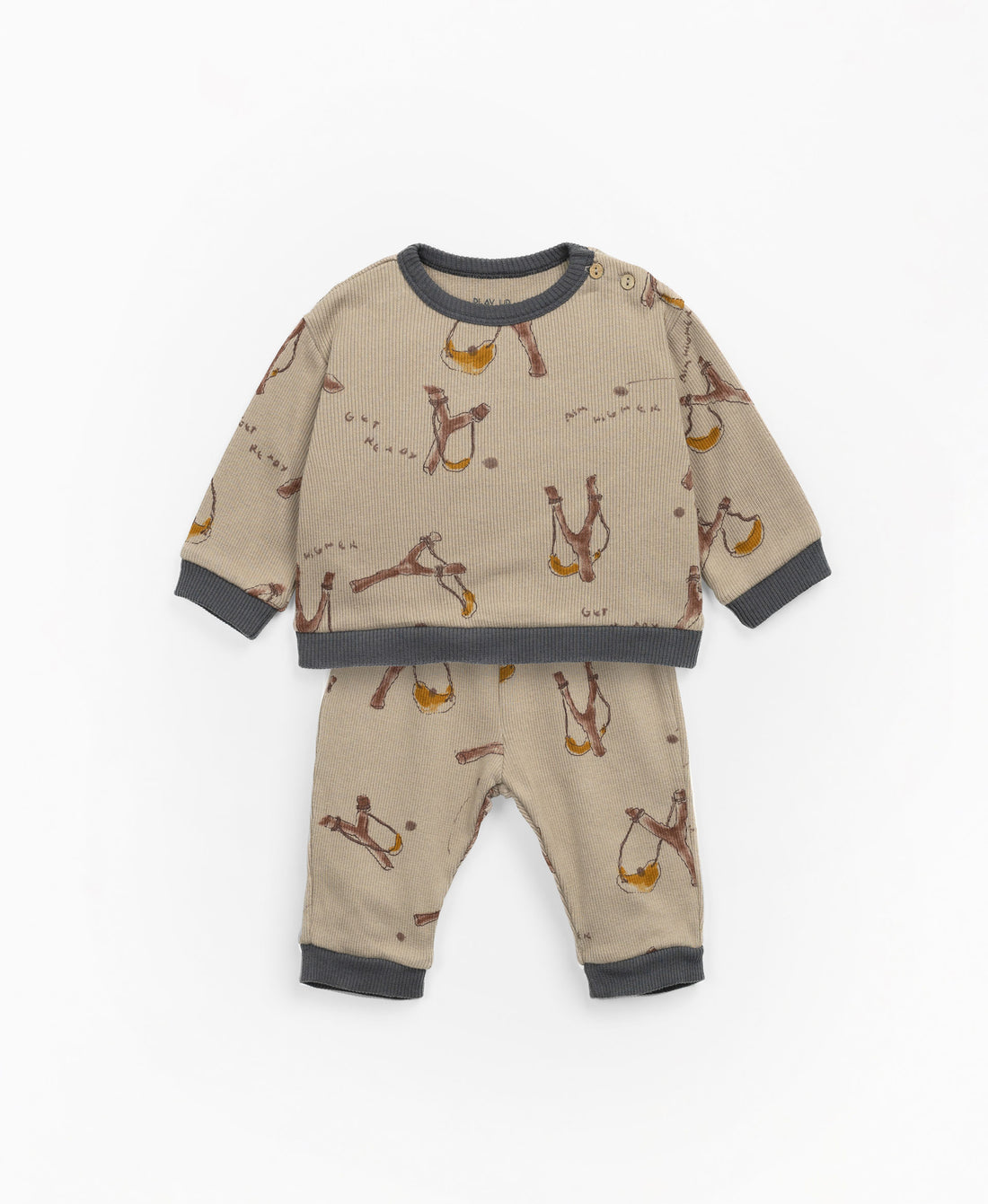 هذه البيجامة مصنوعة من القطن العضوي بخياطة الجيرسيه، بلون سيزار، ولها طبعة المقلاع الخاصة بنا....