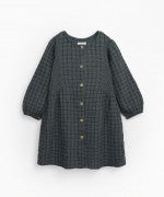 This woven dress is made from organic cotton, Memories color. It is a long-sleeve model...
