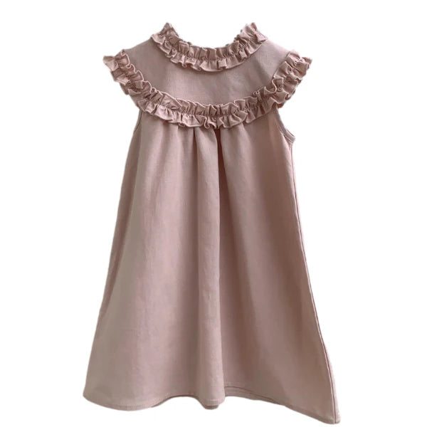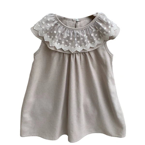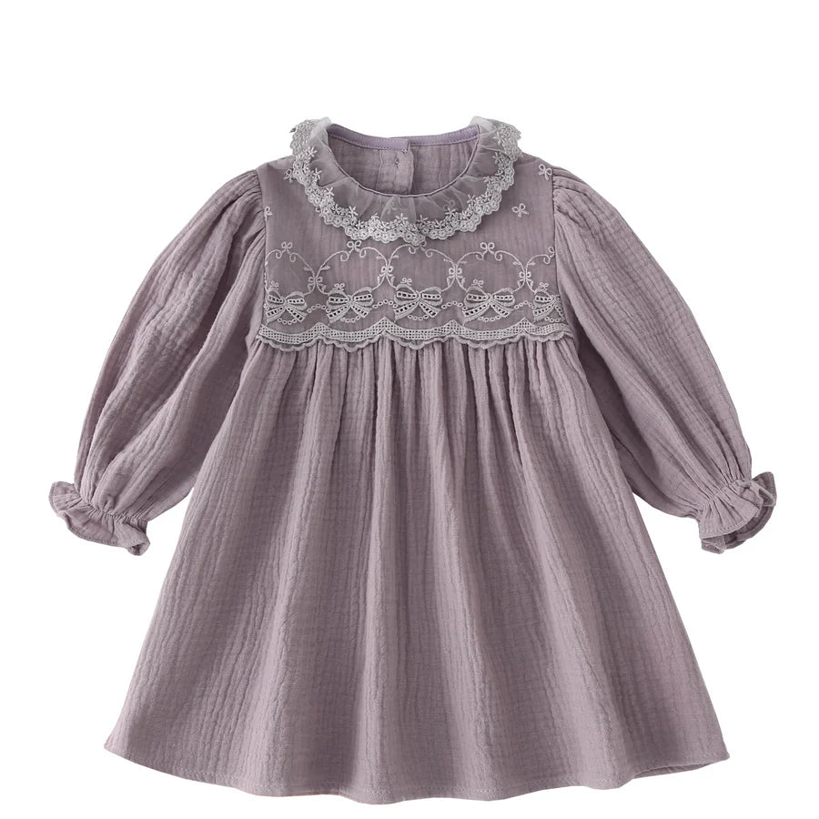 A delicate charm blows across this waffle cotton gauze dress, enhanced by an embroidered bib...
