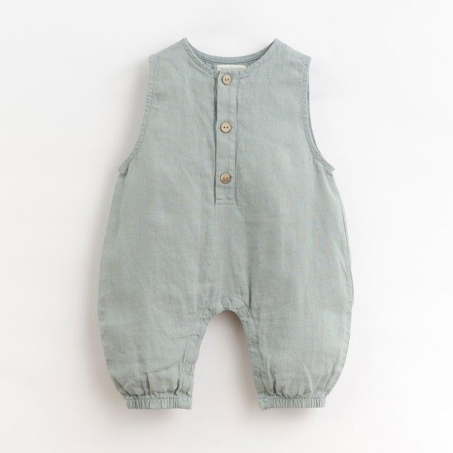 This woven jumpsuit is made from organic cotton, Memories color. It's a short lenght model...