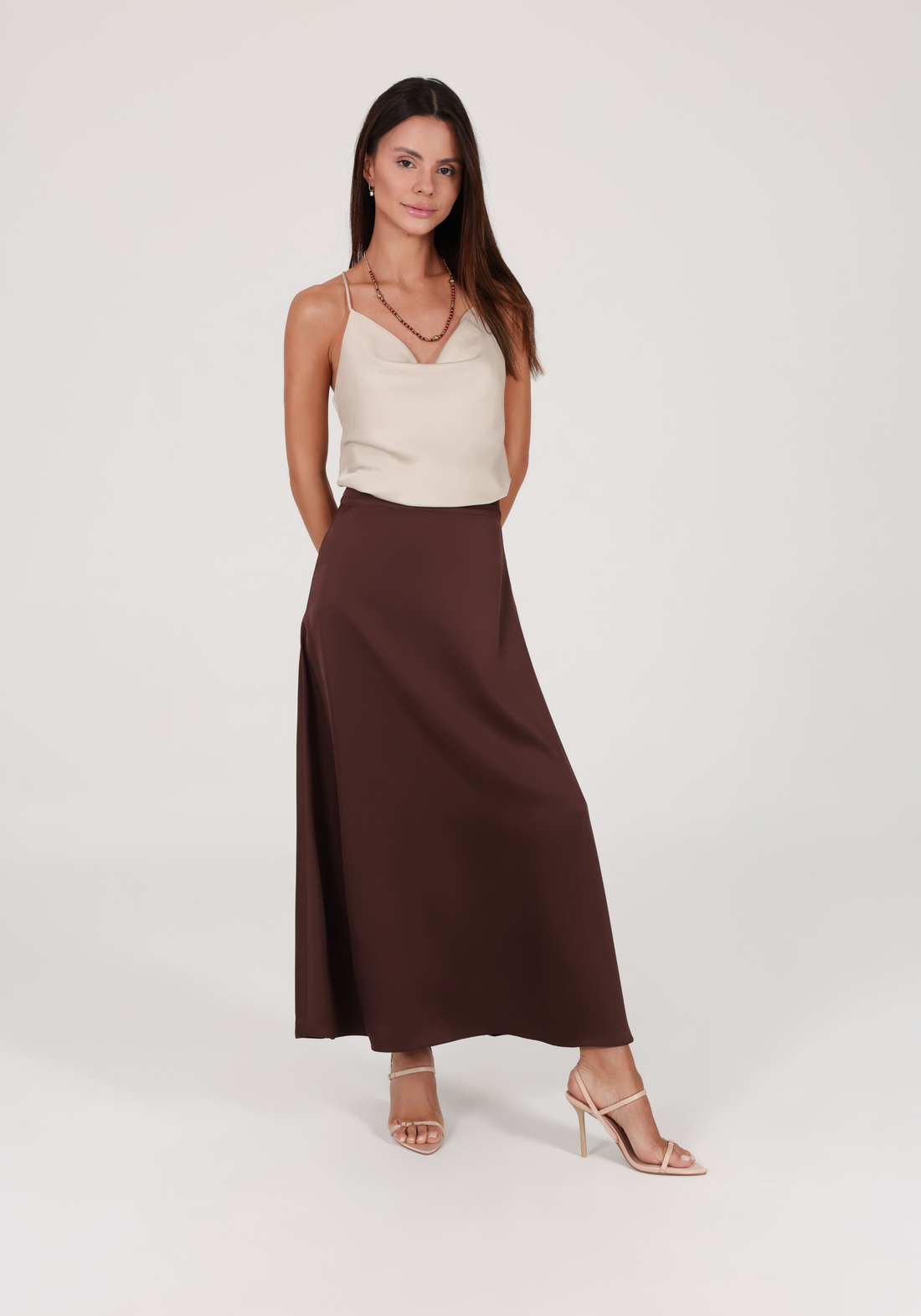 The Mimosa Flare Skirt – Twill Satin - Choclate Brown