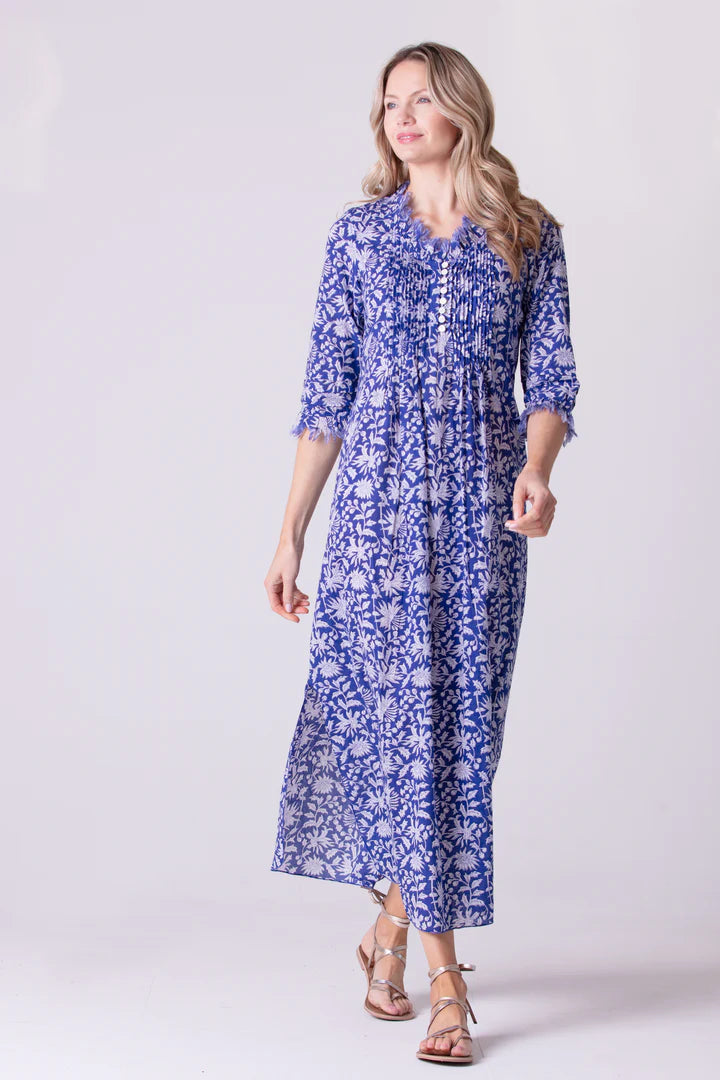 Cotton Annabel Maxi Dress in Blue with White Flower