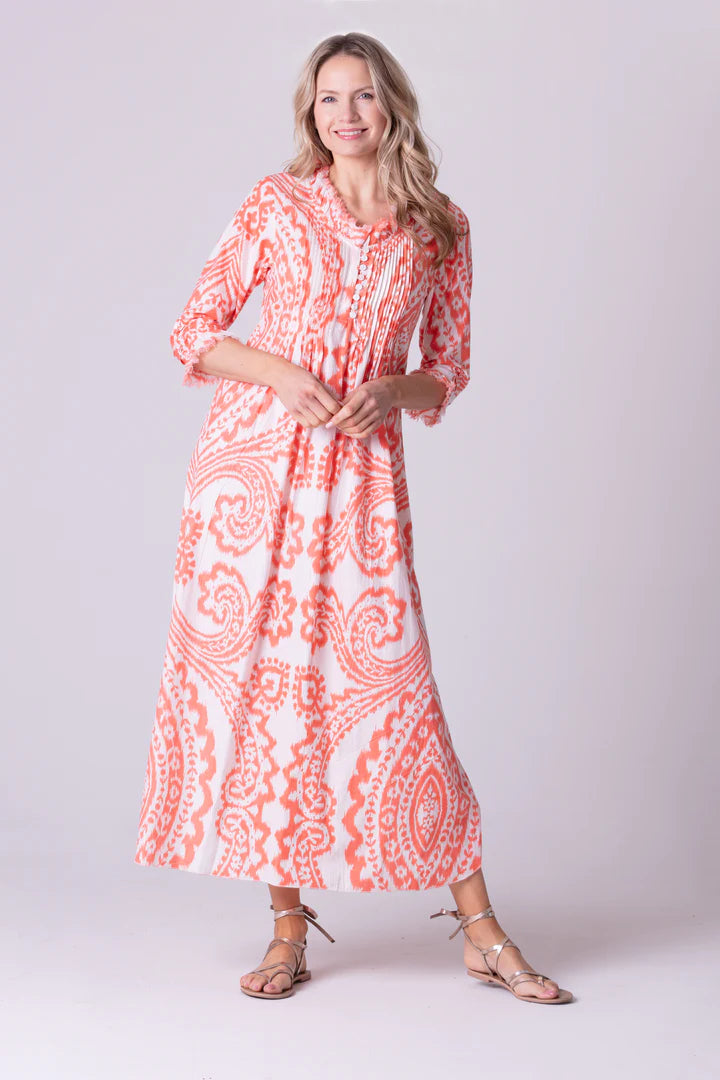 Cotton Annabel Maxi Dress in Orange & White Ikat