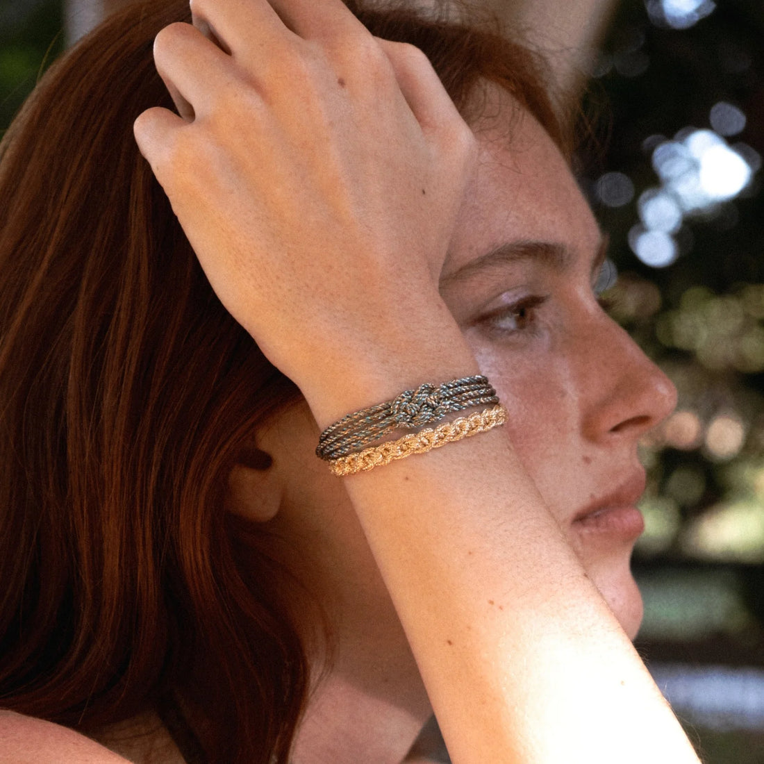 The maxi knot bracelet is versatile and can be worn stylishly on its own or...