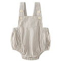 A touch of yesteryear blows through these timeless bloomer overalls. With their fine navy blue stripes and bouffant cut, they evoke beautiful days spent in the garden or holidays by the sea. A unisex piece, soft and full of character, designed to accompany baby on their most tender explorations.