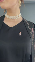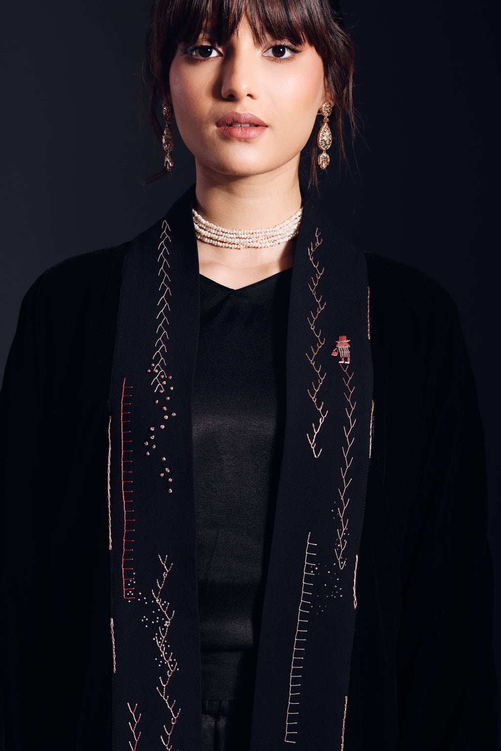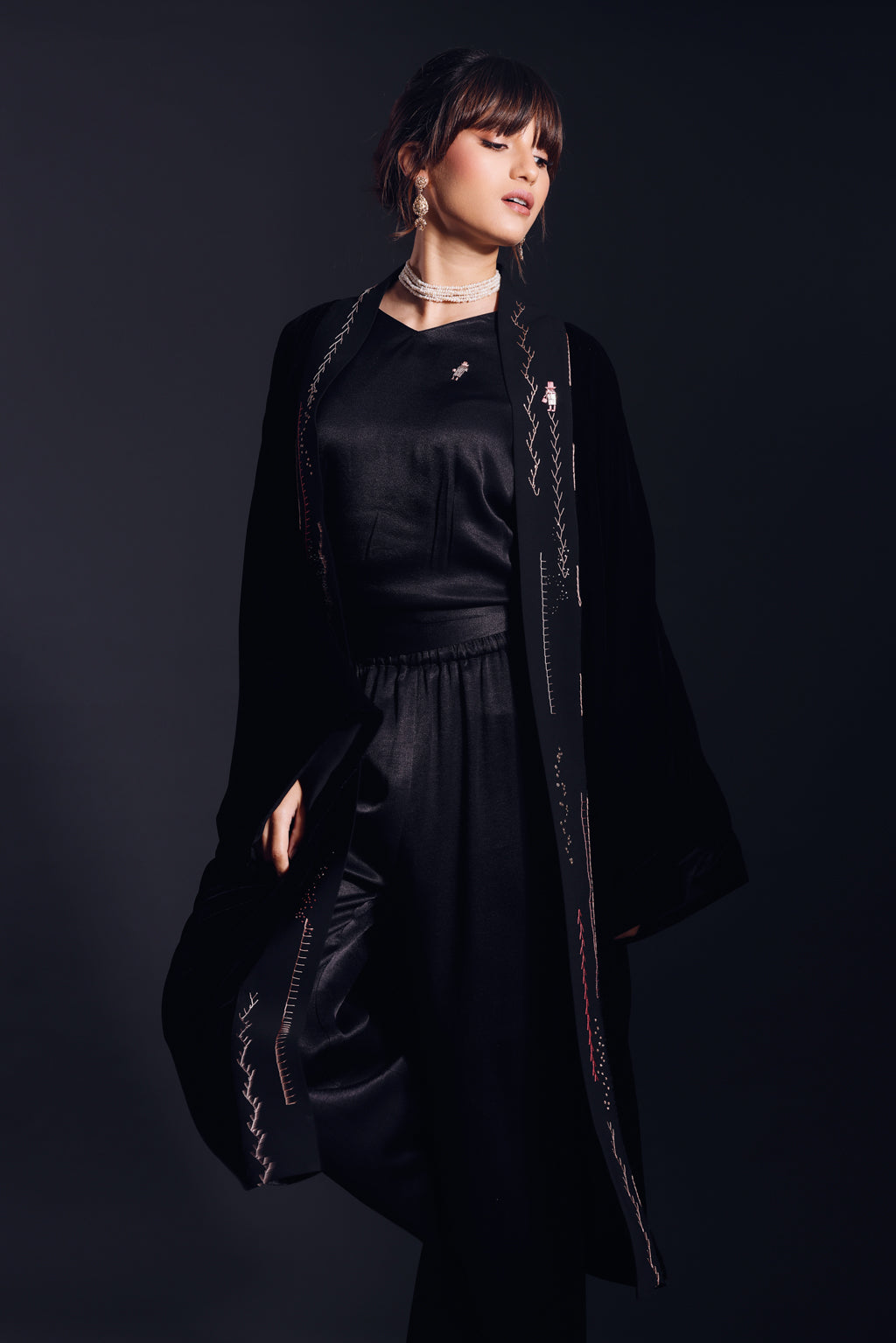 كيمونو أماني مطرز يدوياً بخيوط من القطن الخالص والحرير ومطرز باللؤلؤ عالي الجودة الذي يمثل الجبالية (رمز العلامة التجارية) في منظر طبيعي تجريدي.