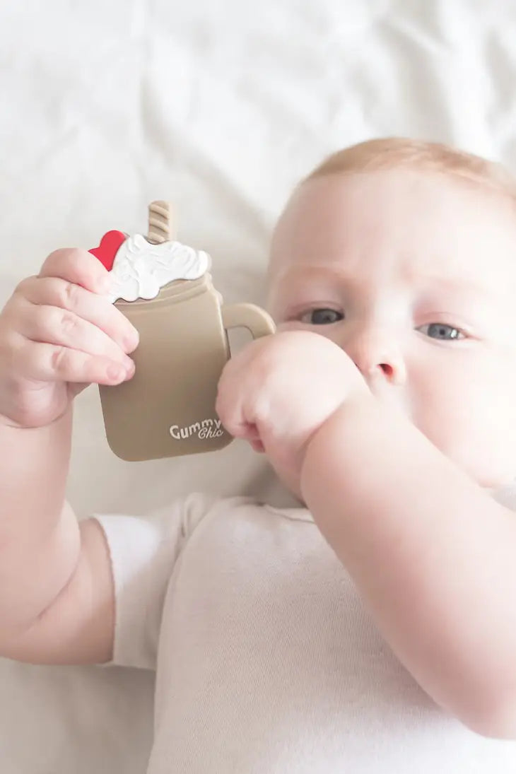 تم تصميم عضاضة ميلك شيك للأطفال هذه في الولايات المتحدة الأمريكية مع الكثير من العناية والاهتمام بالتفاصيل من أجل توفير التحفيز البصري لطفلك، وأشكال وأسطح مختلفة للتطور الحسي. يبلغ مقاس العضاضة حوالي 3 سم × 2.5 سم إجمالي طول الحزام مع المشبك المتضمن حوالي 10 سم. أفضل جودة من السيليكون الآمن غذائيًا: خالٍ من البيسفينول والفثالات والكادميوم والرصاص والمعادن الثقيلة. بدون رائحة أو طعم.