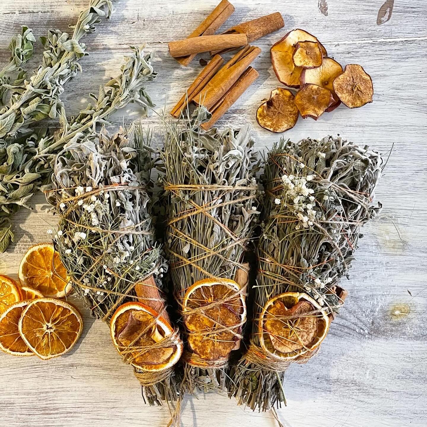 باقة التطهير للطاقة | باقة الشتاء | باقة المريمية الزهرية | باقة سمج | عصا التنظيف العشبية - تطهير، تنقية، توازن