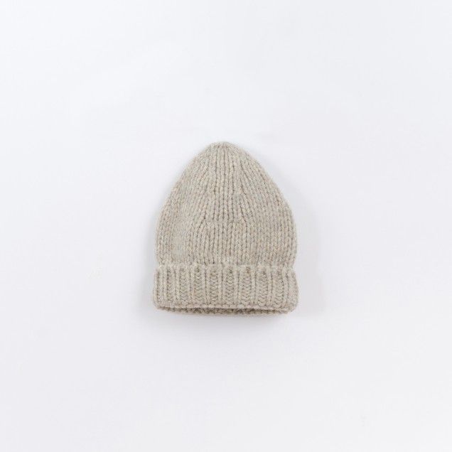 هذه القبعة ذات الغرز الجيرسي مصنوعة من مزيج من الصوف والصوف المعاد تدويره والبولي أميد المعاد تدويره، بلون الشوفان.