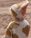 هذه القبعة ذات الغرز الجيرسي مصنوعة من مزيج من الصوف والفيسكوز والألياف المعاد تدويرها، بلون سوزانا. قبعة صغيرة بنمط تجريدي مقلوب ومتجه للخارج.
