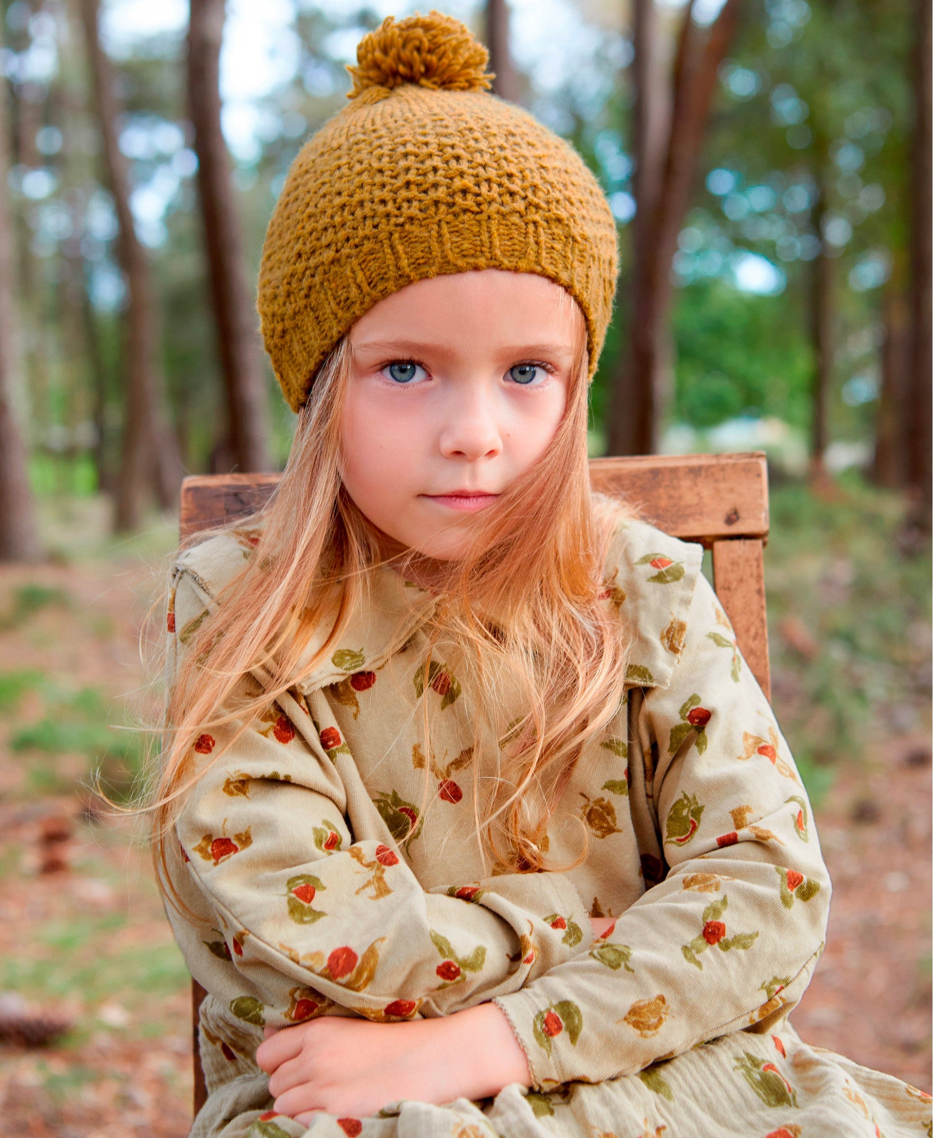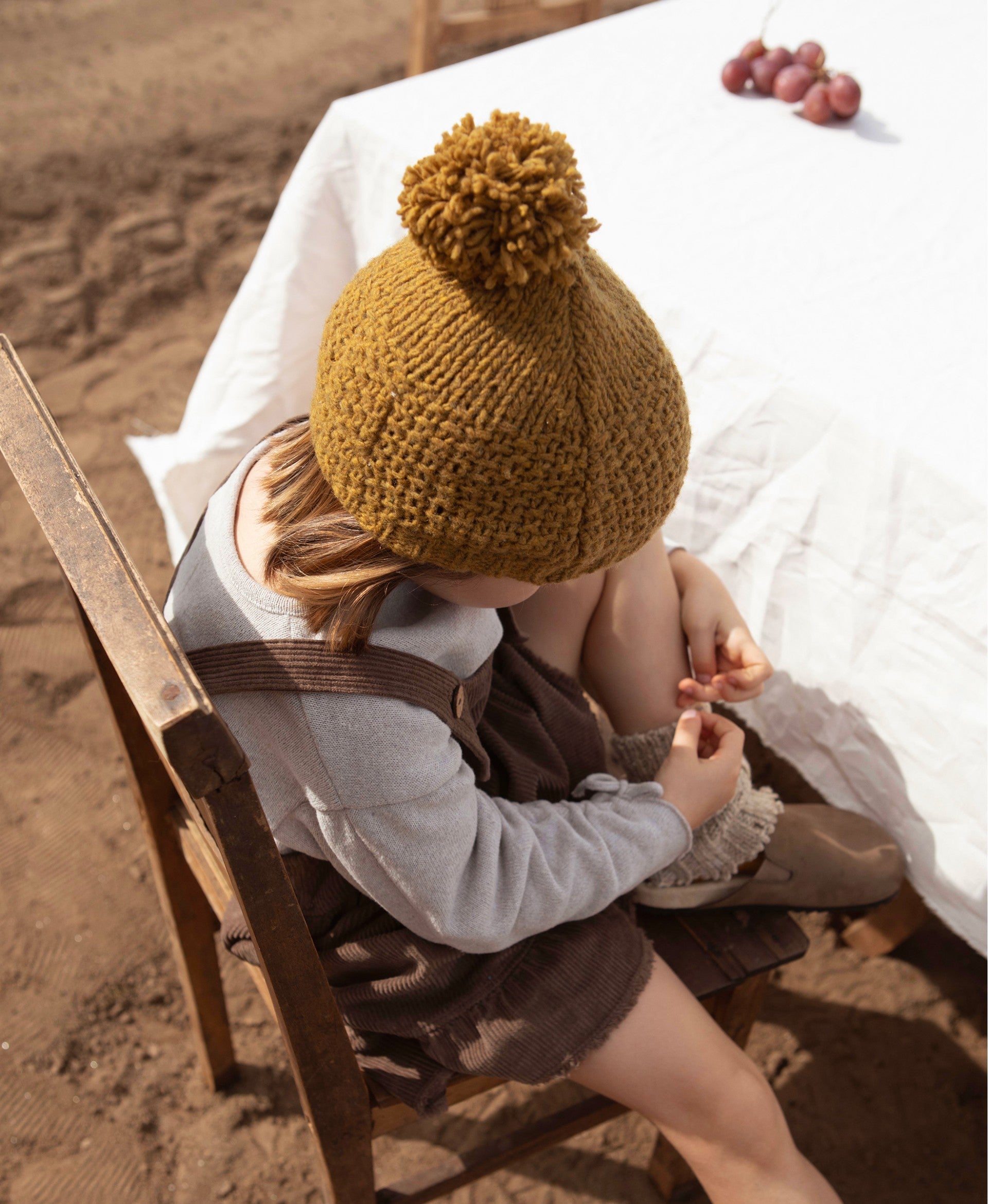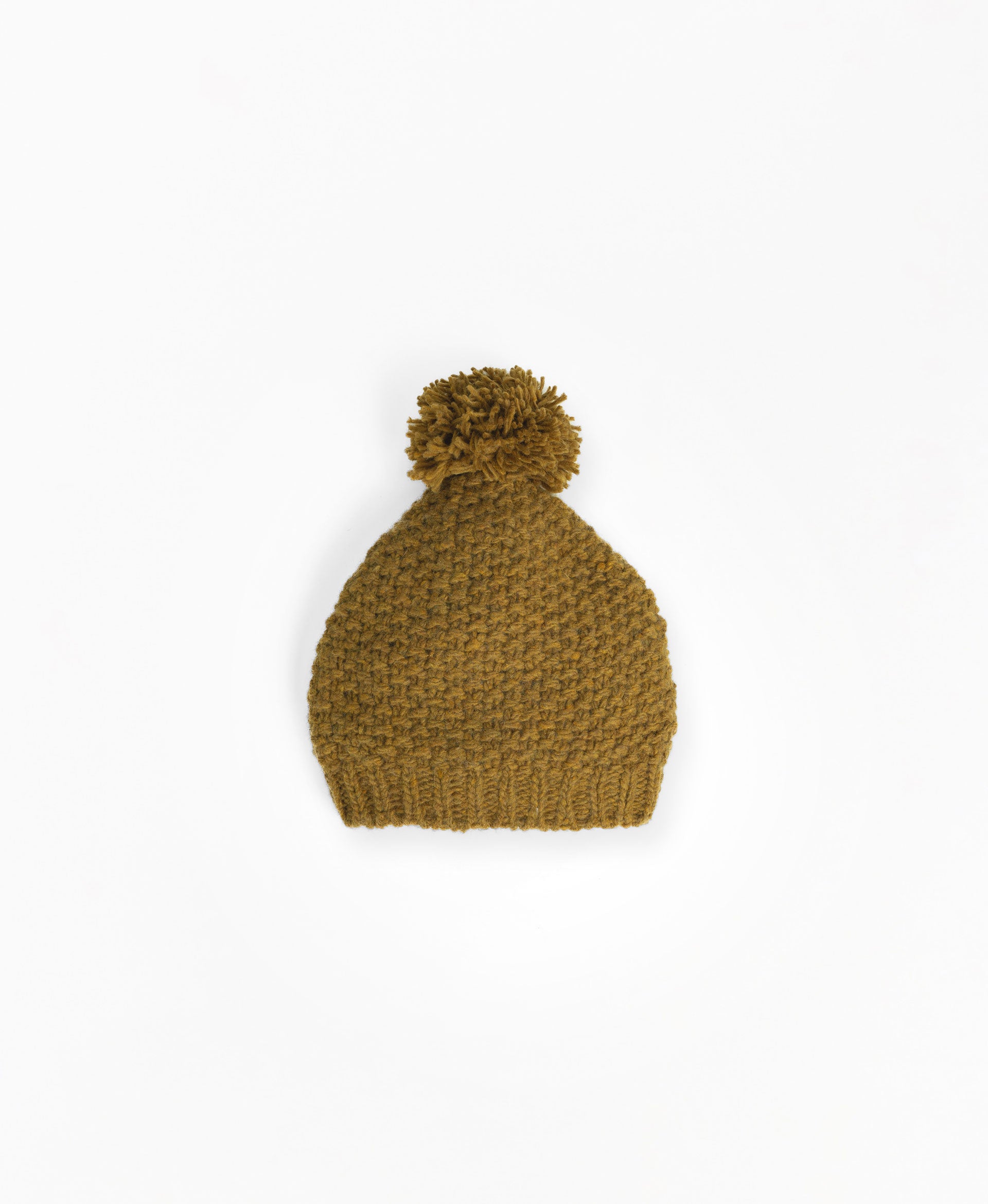 هذه القبعة ذات الغرز الجيرسي مصنوعة من مزيج من الصوف والفيسكوز والألياف المعاد تدويرها، بلون فورجايس. بوم بوم في الأعلى