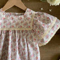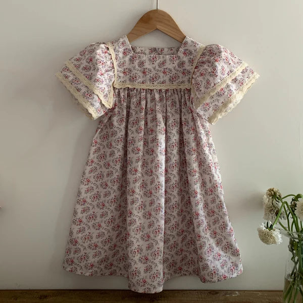 Add a touch of romance and retro charm to your child's wardrobe with this beautiful floral dress. Crafted with a delicate floral print, this dress is distinguished by its wide lace-trimmed sleeves, offering a soft and elegant look. The loose fit ensures optimal comfort, while the lace details add a sophisticated finish to this timeless piece. Made from soft cotton, it is ideal for summer days or special occasions.