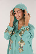 Colour: Mint Green with gold, pearl, and multicolor embellishments