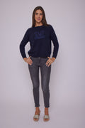 سترة بشعار إنتارسيا مصنوعة من الكشمير الناعم، ومميزة برقبة دائرية وأكمام طويلة وأساور أكمام وحاشية مضلعة.