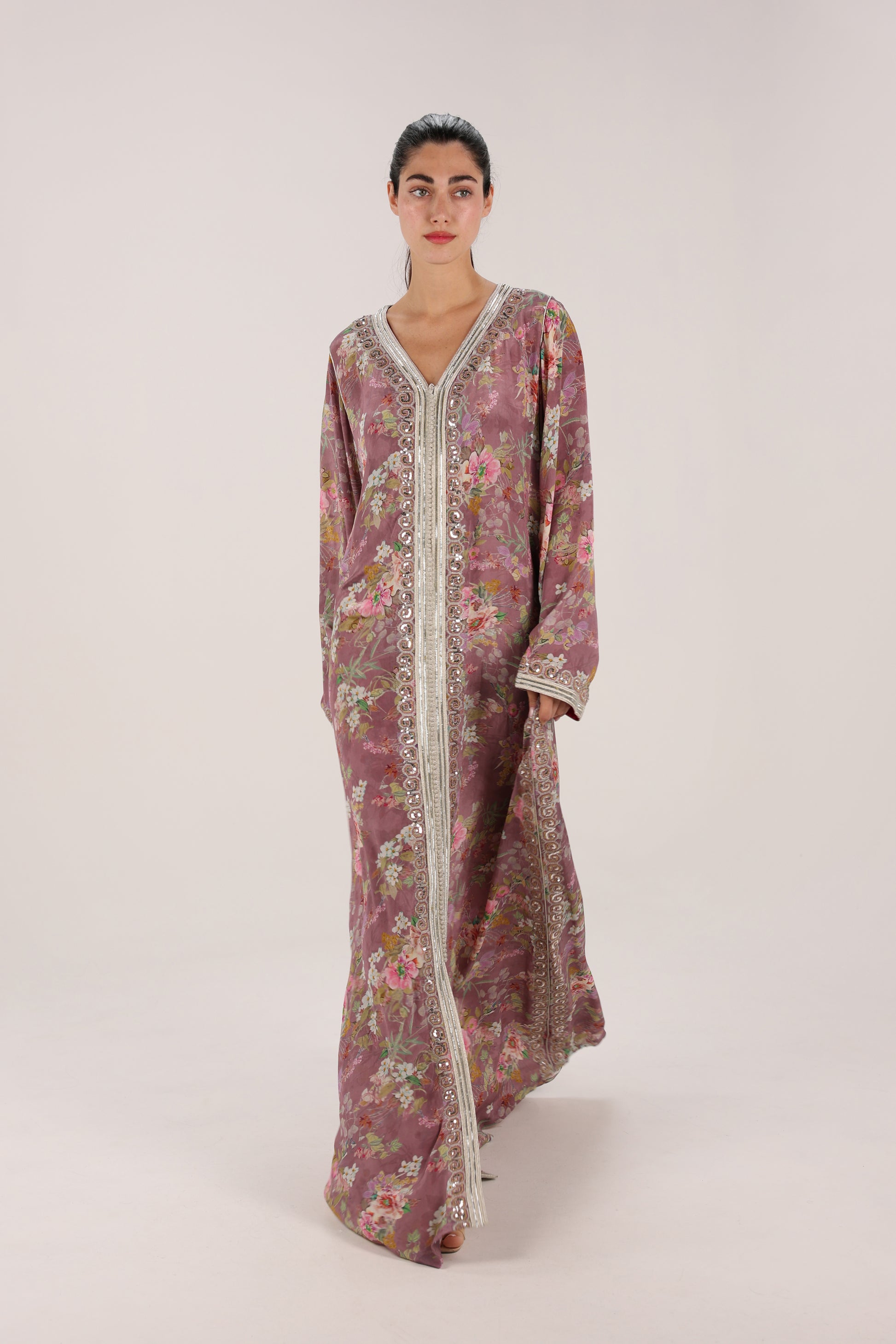 An effortlessly elegant kaftan designed for graceful evenings and timeless occasions.