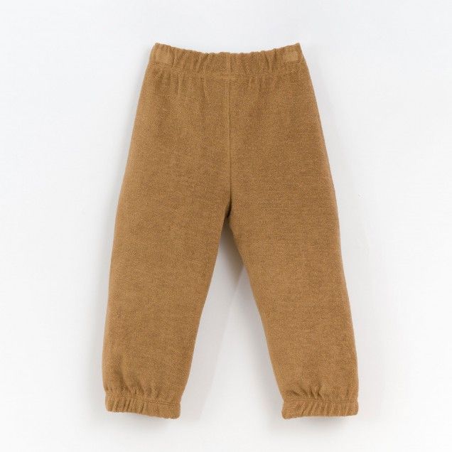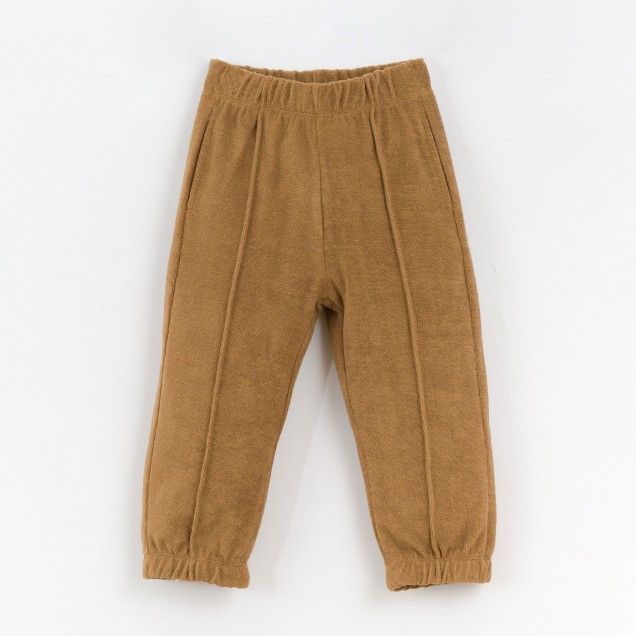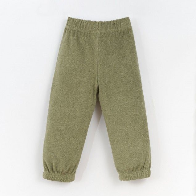 هذا البنطلون بخياطة الجيرسيه مصنوع من مزيج من 50.0% من القطن العضوي و50.0% من القطن المعاد تدويره والكاكاو واللون الأخضر الزيتي. يتميز النموذج بخصر مطاطي وحواشٍ وجيوب وتفاصيل مضلعة في الأمام. جميع المواد الخام المستخدمة في هذه القطعة حاصلة على شهادة Standard 100 من OEKO-TEX - مما يجعلها خالية من المواد الضارة ببشرة الأطفال.