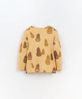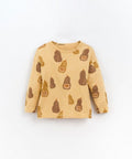 This T-shirt is made of jersey stitch organic cotton, Golden Milk colour. The model has a round neck, long sleeves, sewn inside out detail on the arm opening and our peppers print. All the raw materials used in this piece have Standard 100 Certification by OEKO-TEX - which makes it free of substances which are harmful to children´s skin.