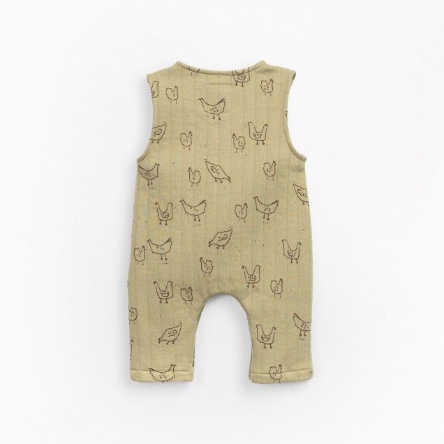 هذه البذلة مصنوعة من قطن عضوي بخياطة جيرسي وبوليستر معاد تدويره، لون تايم. يتميز هذا الموديل بدون أكمام بفتحة أمامية وبين الرجلين مع مشابك معدنية خالية من النيكل (فتحة بين الرجلين حتى مقاس 18M) وطبعة الدجاج الخاصة بنا.