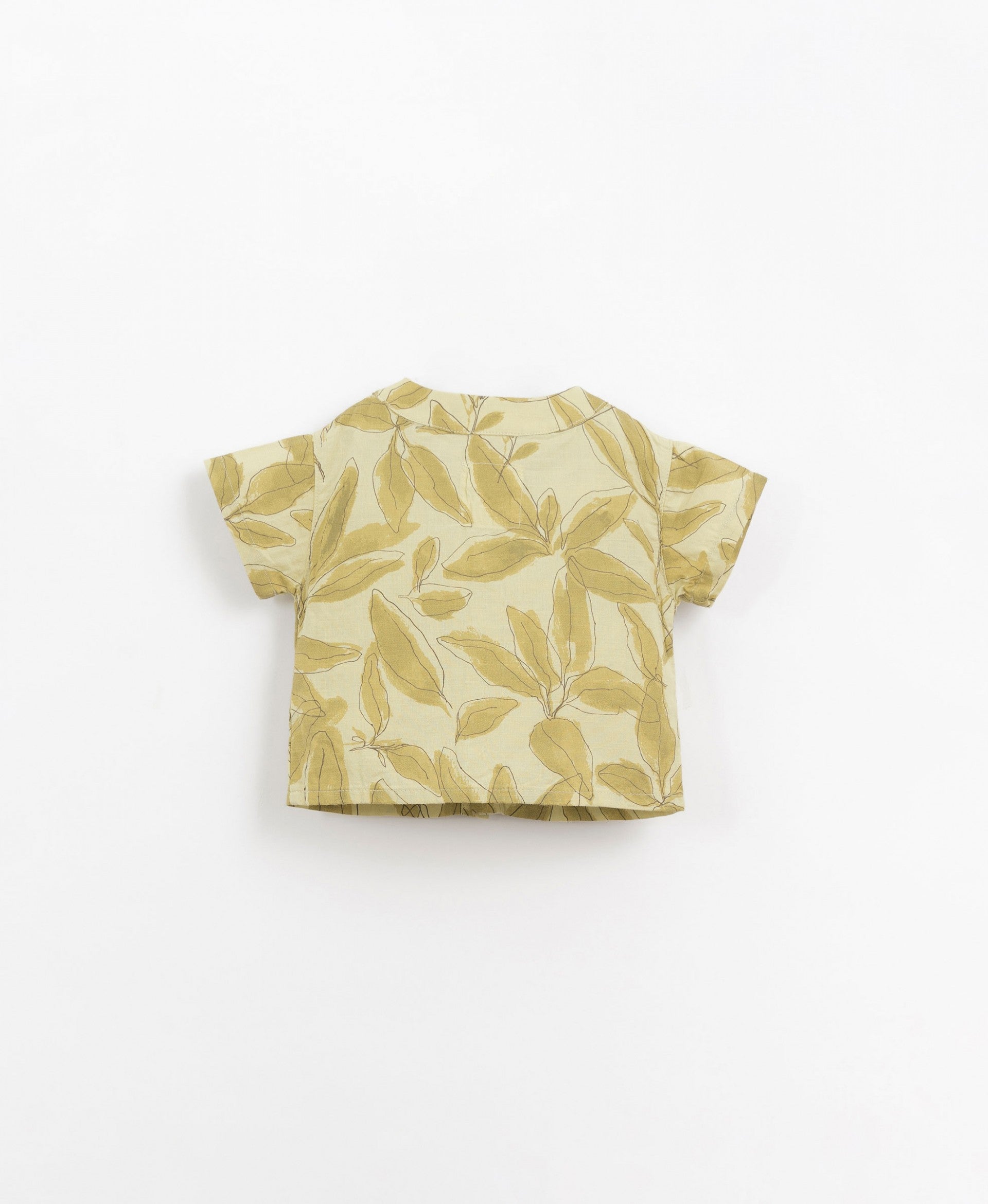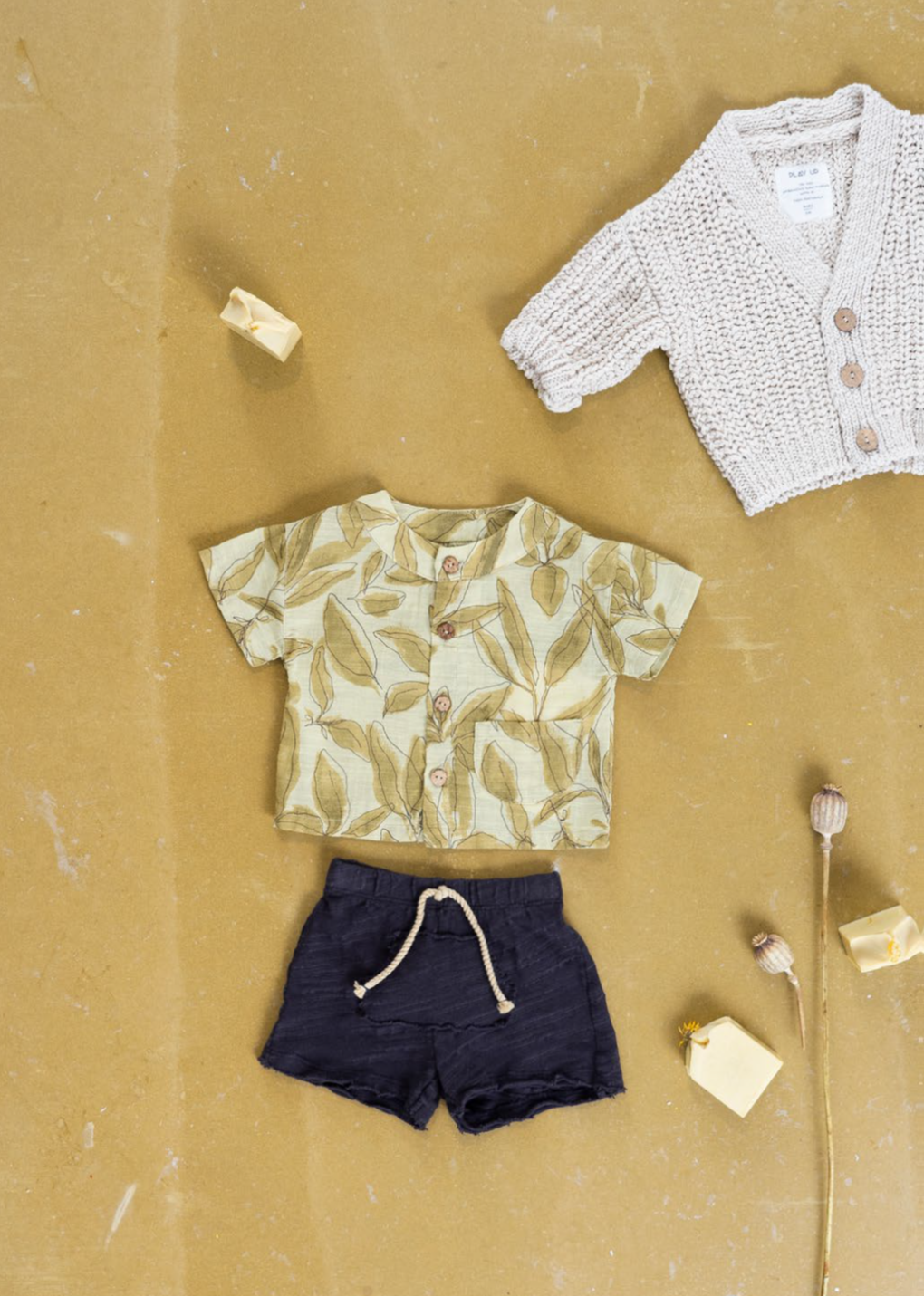 هذا القميص المنسوج مصنوع من مزيج من القطن العضوي والقطن بلون الصبار. يتميز الموديل بأكمام قصيرة ورقبة مستديرة، ويوجد فتحة في الأمام بأزرار جوز الهند وجيب على الصدر وطبعة أوراق المريمية. جميع المواد الخام المستخدمة في هذا الثوب معتمدة وفقًا للمعيار 100 من OEKO-TEX، الفئة الأولى وتم اختبارها للتأكد من عدم وجود مواد يمكن أن تضر بشرة الأطفال.