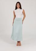 A fresh twist on a timeless favorite — The Mimosa Satin Midi Skirt in Mist Green brings softness and refinement to your wardrobe. Designed with a flattering high waist and a clean silhouette, it flows effortlessly with every step.