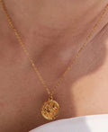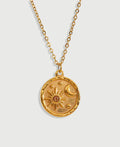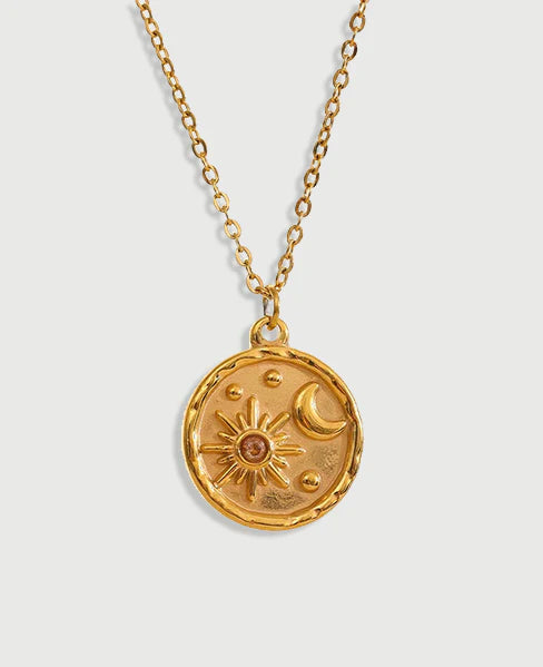 Embrace the cosmic allure with this celestial pendant necklace, featuring an intricate sun and moon design. Crafted from 18k gold-plated stainless steel, it's both waterproof and tarnish-free. The sparkling cubic zircon at its center adds a hint of elegance, making it perfect for day or night wear.