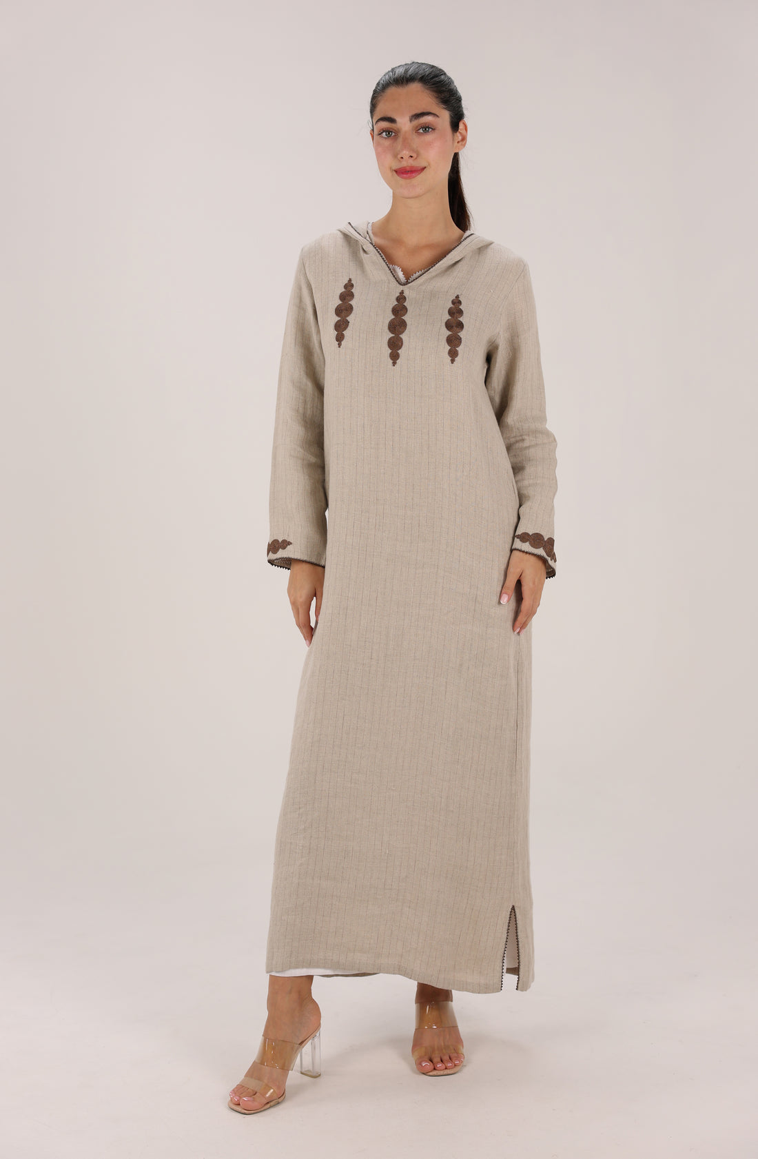 Natural Beige Two-Piece Hooded Djellaba Set