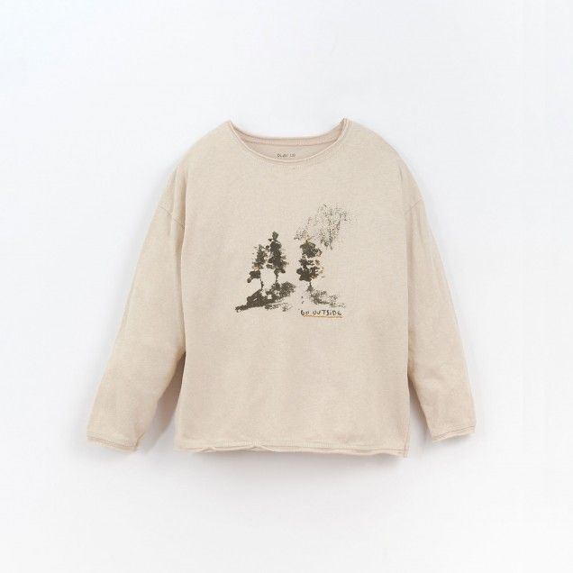 This T-shirt is made of jersey stitch organic cotton, recycled cotton and linen, Oat colour....