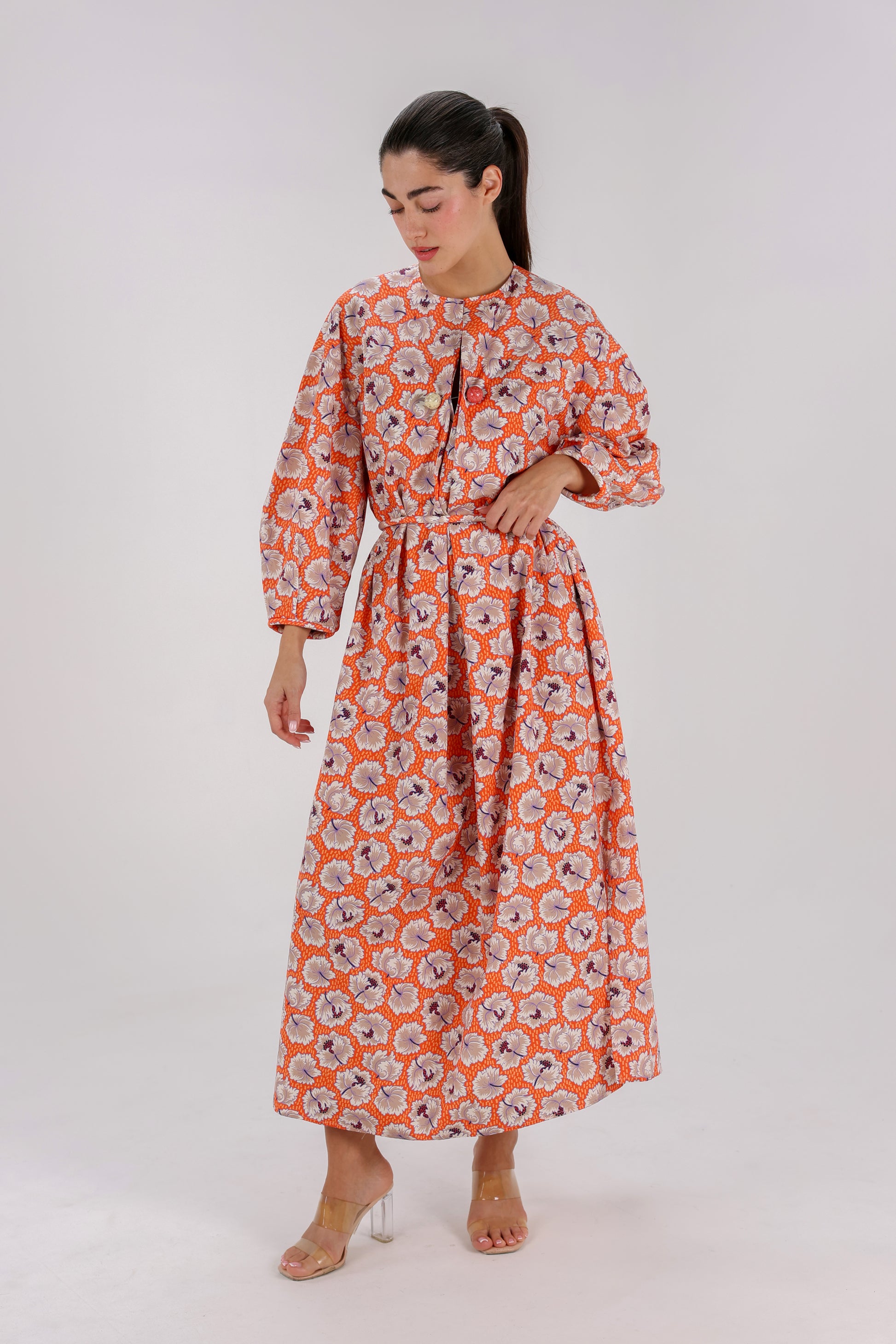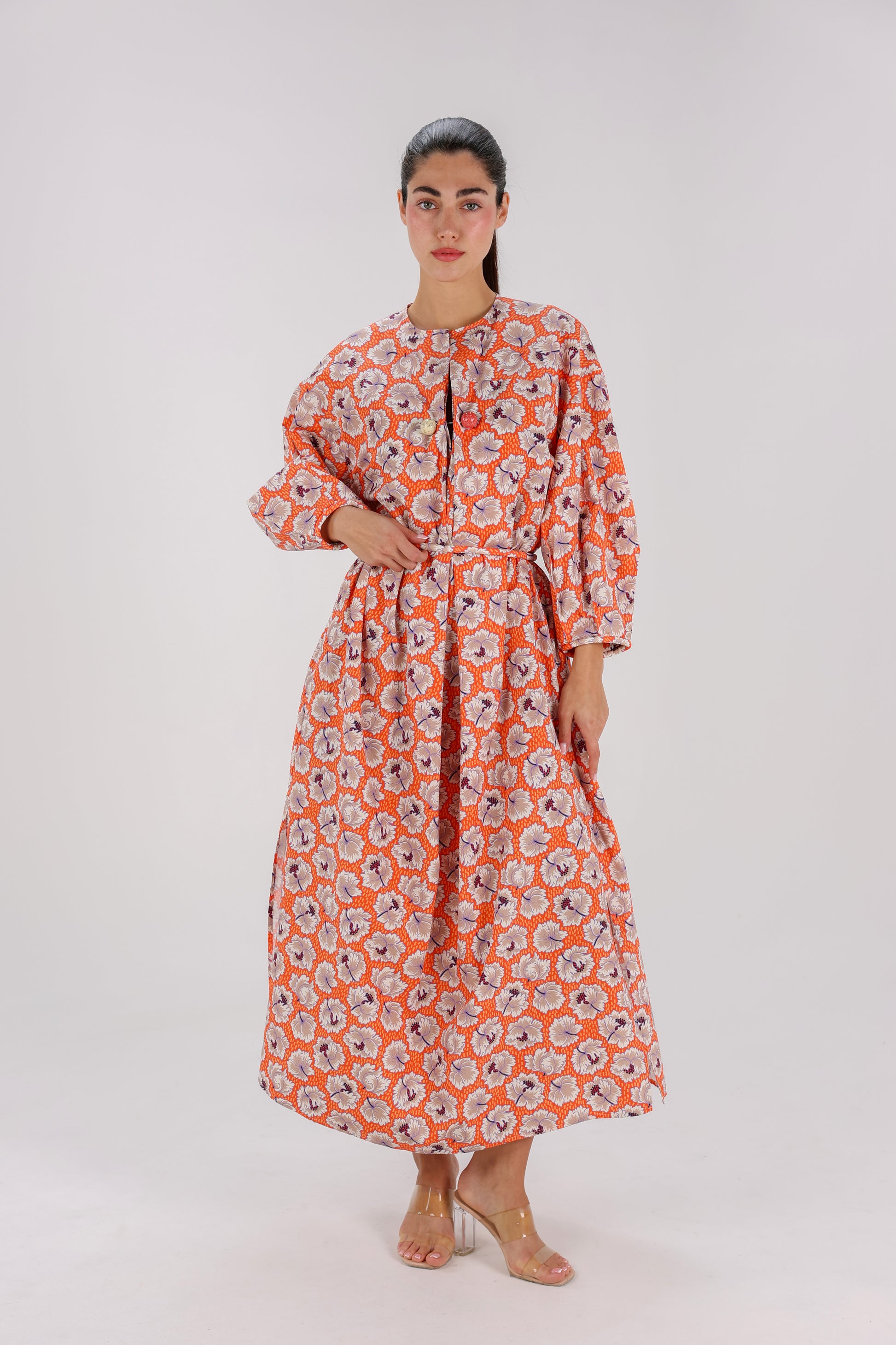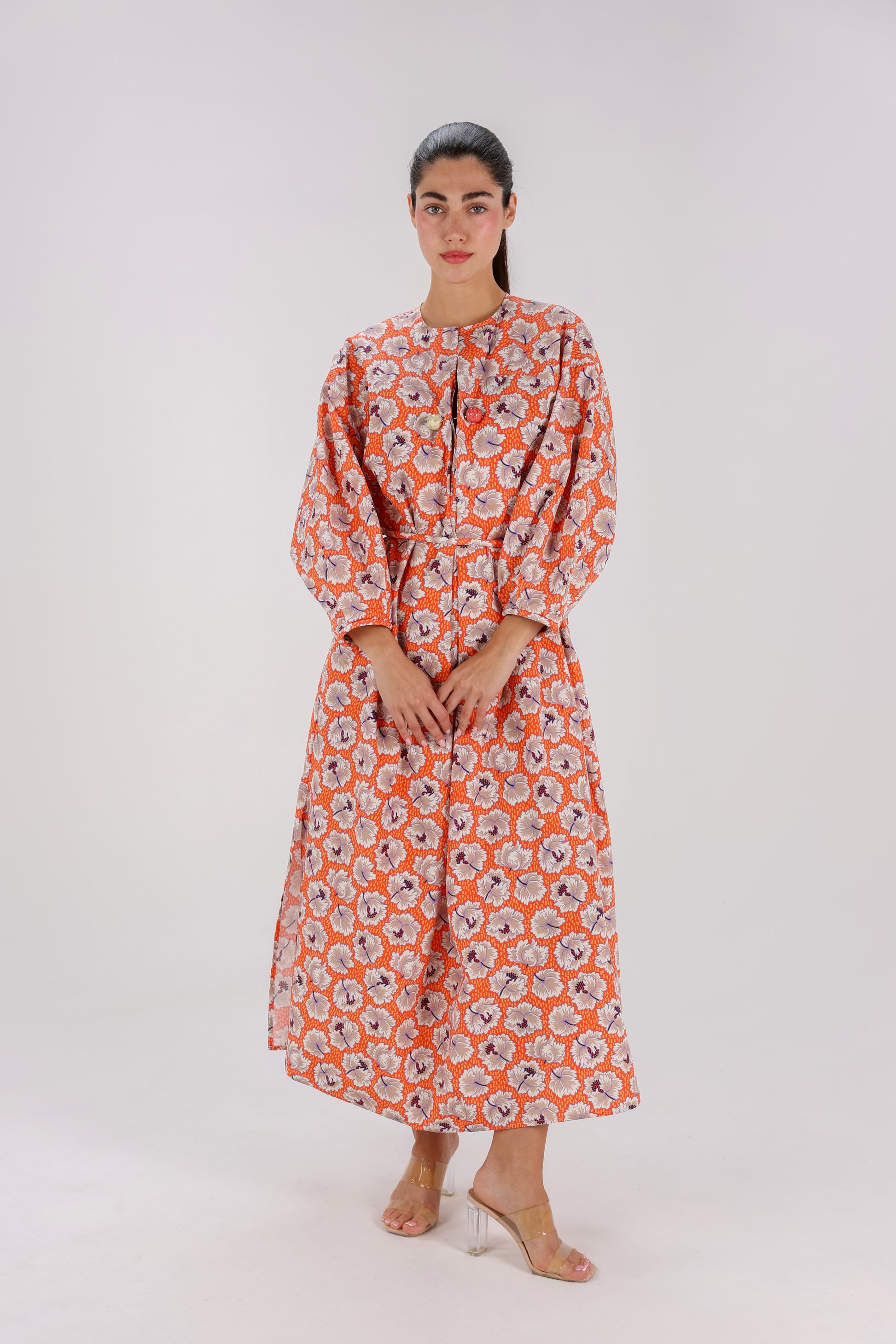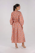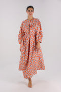 This elegant V-neck dress is designed with a refined neck-pin detail and finished with coiled hem cuffs and a matching coiled bow belt, creating a softly structured yet fluid silhouette. Crafted from 100% cotton, the dress offers breathable comfort and a natural drape, making it suitable for both everyday wear and elevated occasions.