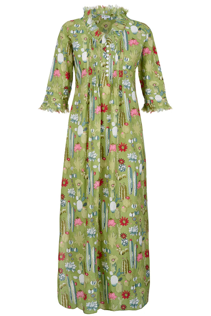 Our Annabel Maxi is a timeless best-selling dress! In beautiful new prints, patterns and colours each year! This dress is tailored to flatter all shapes, sizes and ages. The Annabel maxi is so easy to wear, looks very chic worn over a swimsuit or can be dressed up to wear out for dinner on a hot evening! Fun, light, comfy and flattering, this dress is the perfect summer staple! Featuring functioning buttons and super pretty frilled detailing on the neckline and cuffs.
