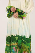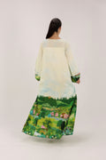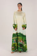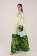 Ivory Landscape Print Kaftan in Botanical Tones