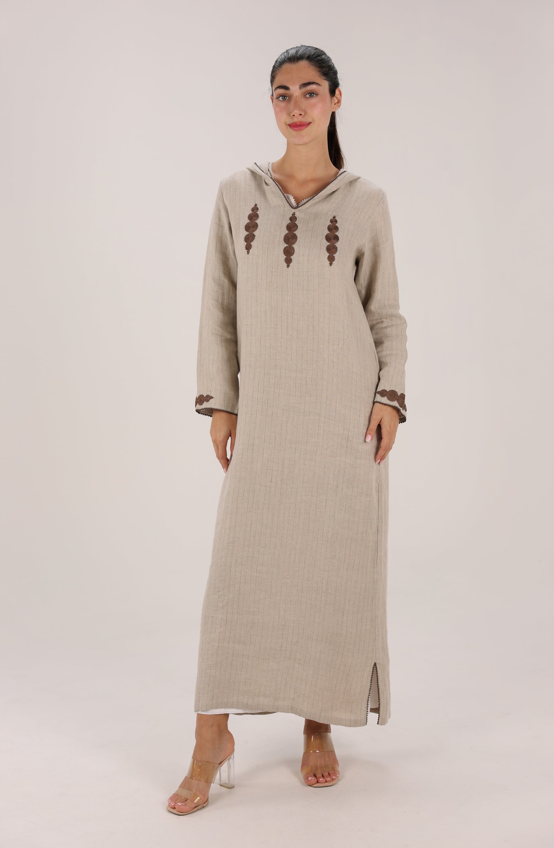 Set includes: Hooded outer djellaba and matching inner dress