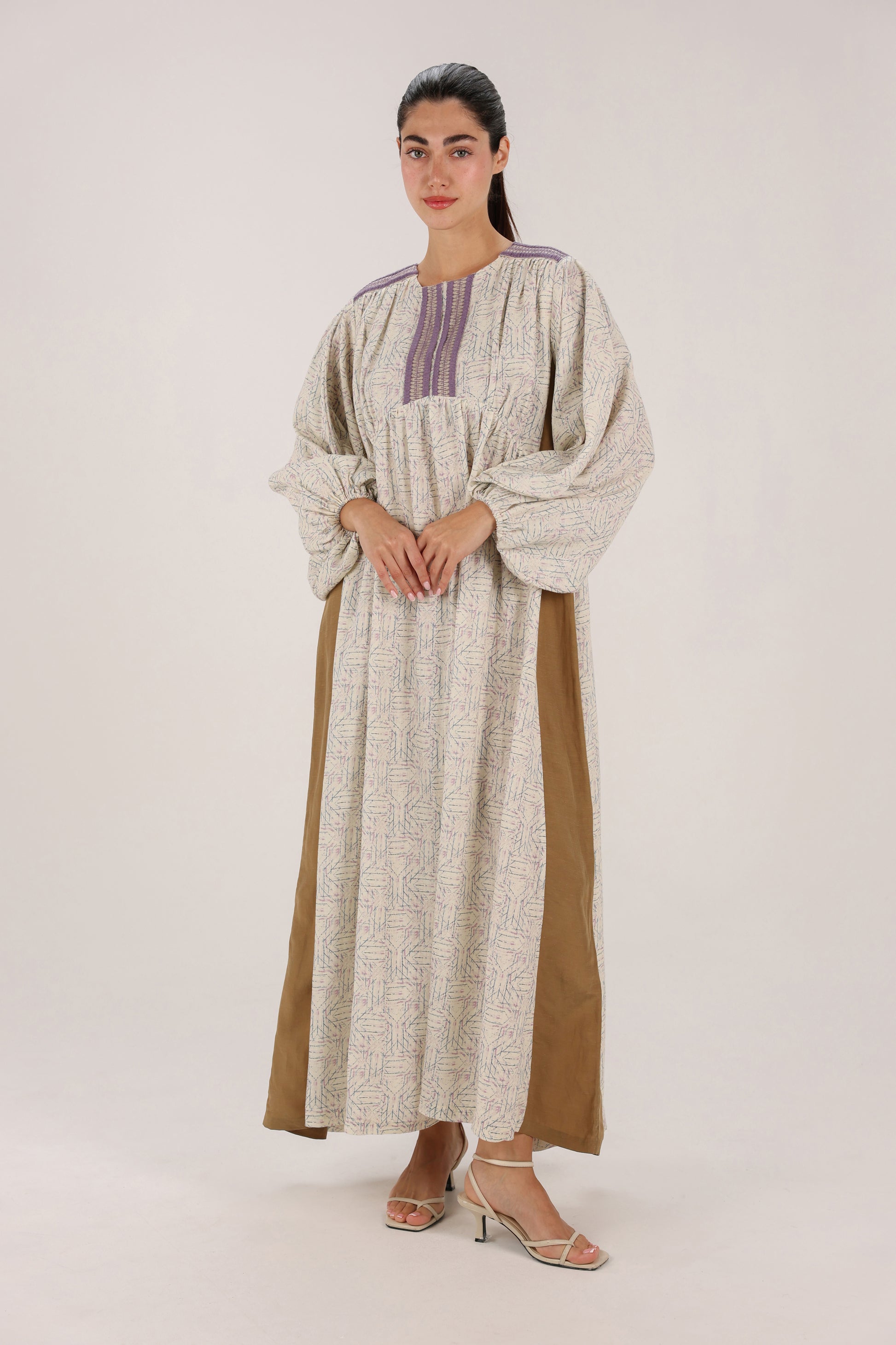 The flowing cut allows for ease of movement, while the contrast side panels add depth and a modern touch. Versatile and timeless, this jalabia transitions seamlessly from day to evening with minimal styling.