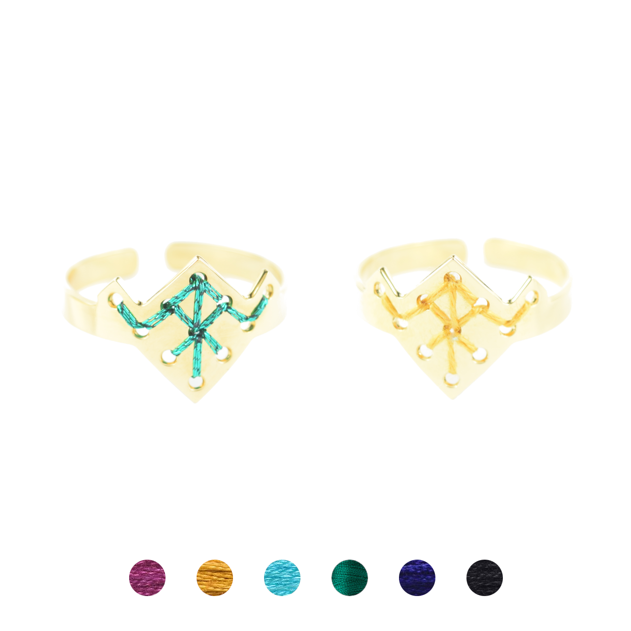 The Souiri ring is very original because of its embroidery and its width shape. Gilded with fine 24-carat gold, this ring is adorned with a Fez embroidery done by hand in cotton thread. The ring is adjustable and will fit all finger sizes. There's nothing like it to beautify your hands in the blink of an eye! To accumulate without moderation!