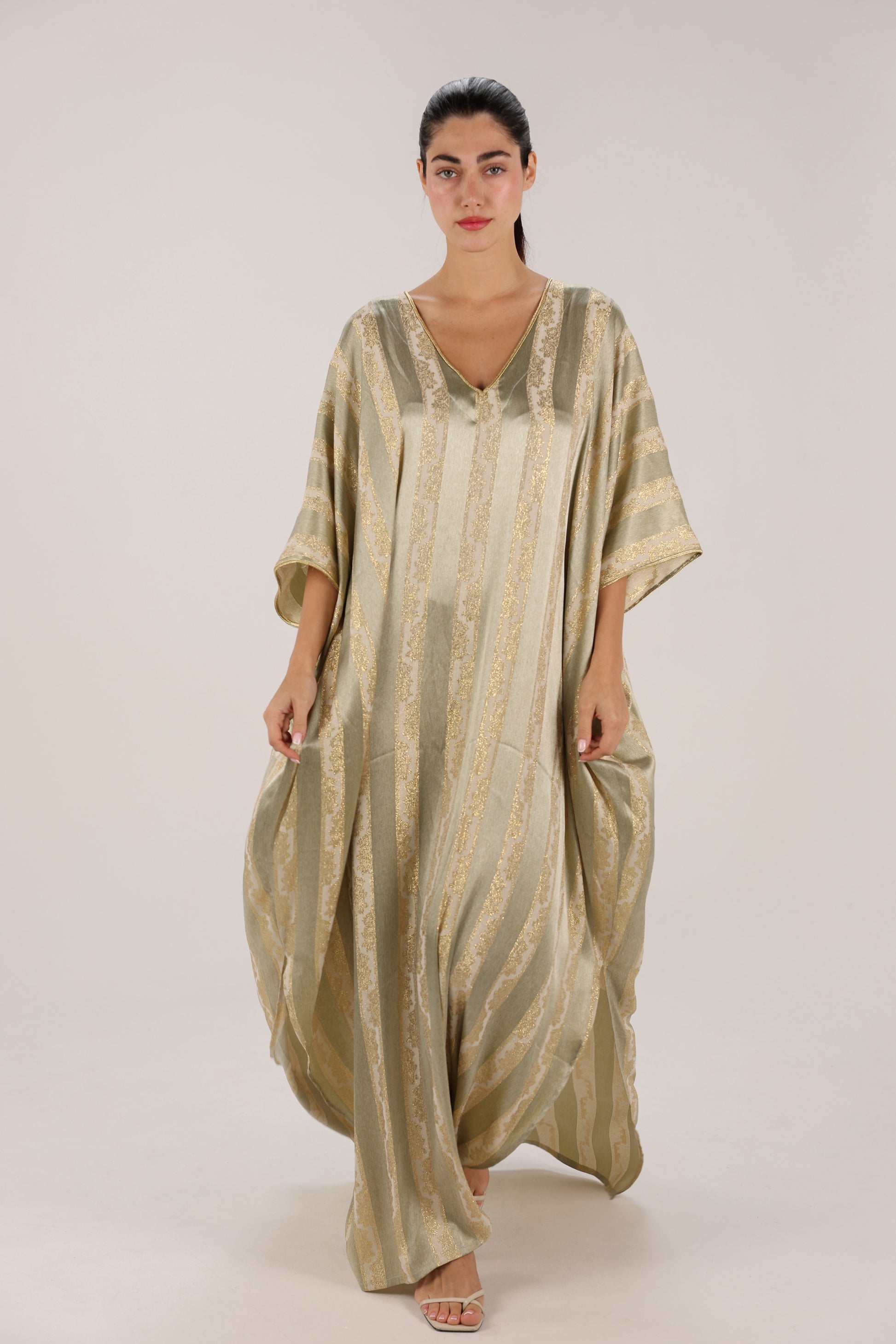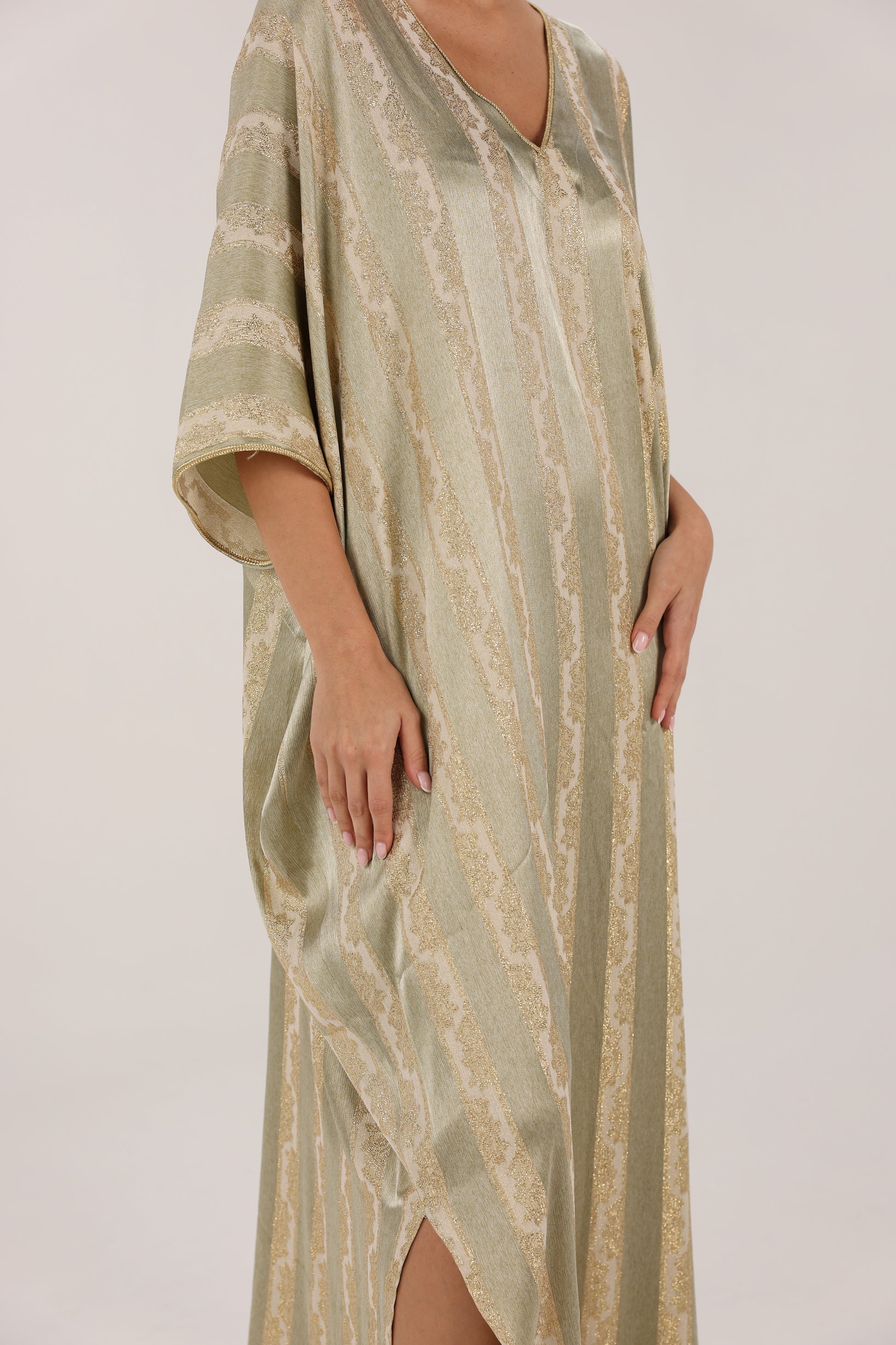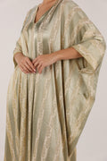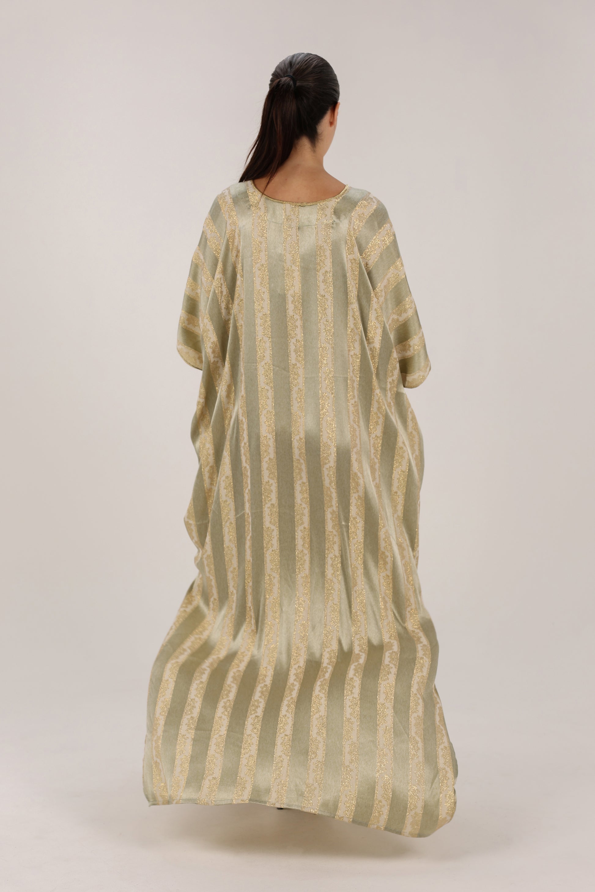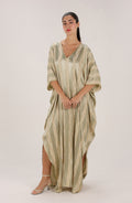 Sage Green Woven Stripe Kaftan with Subtle Gold Sheen