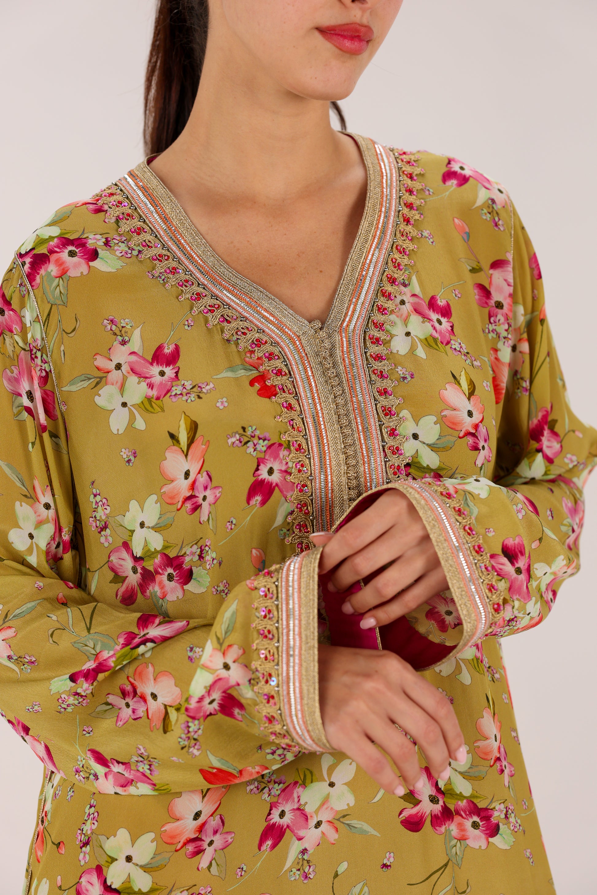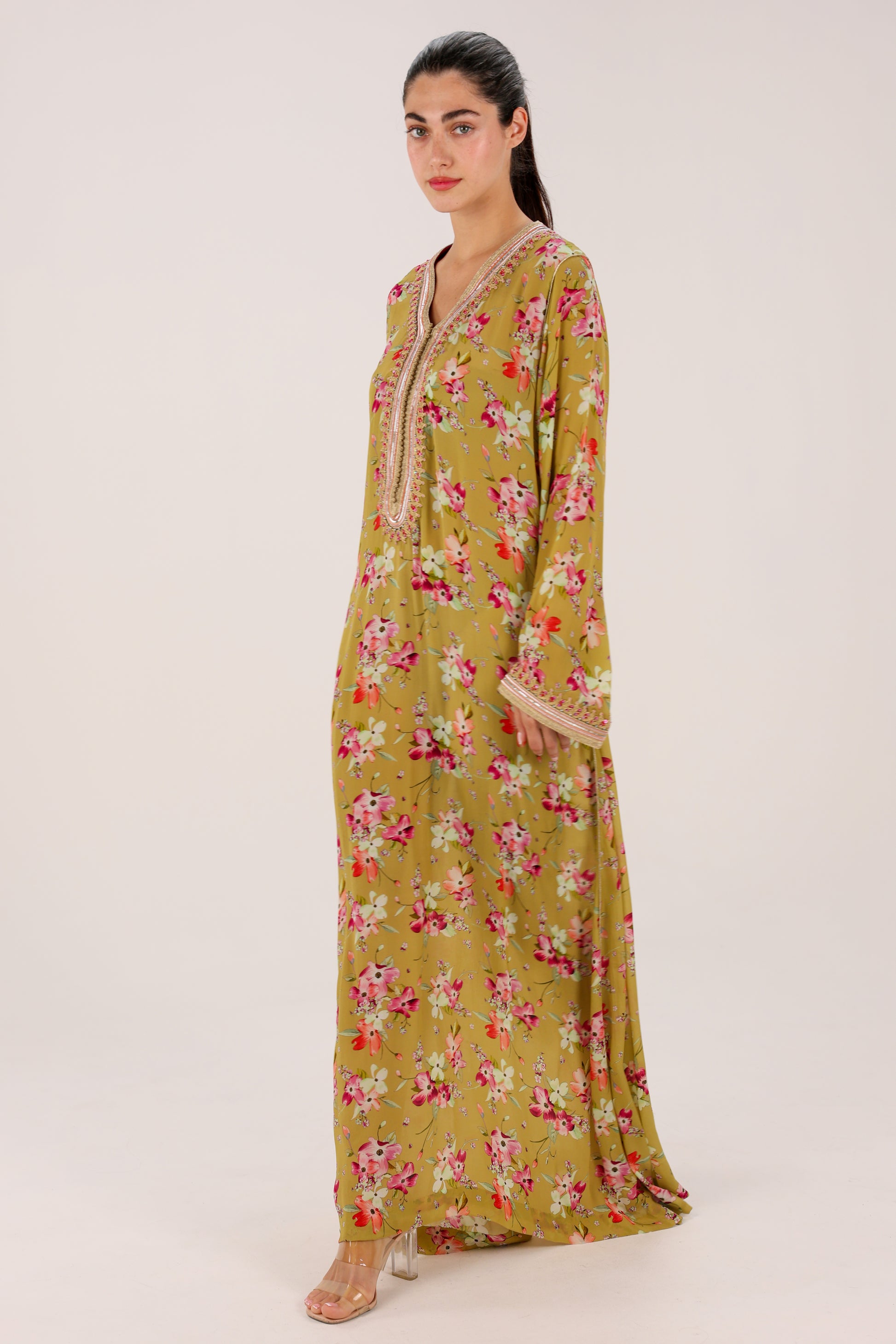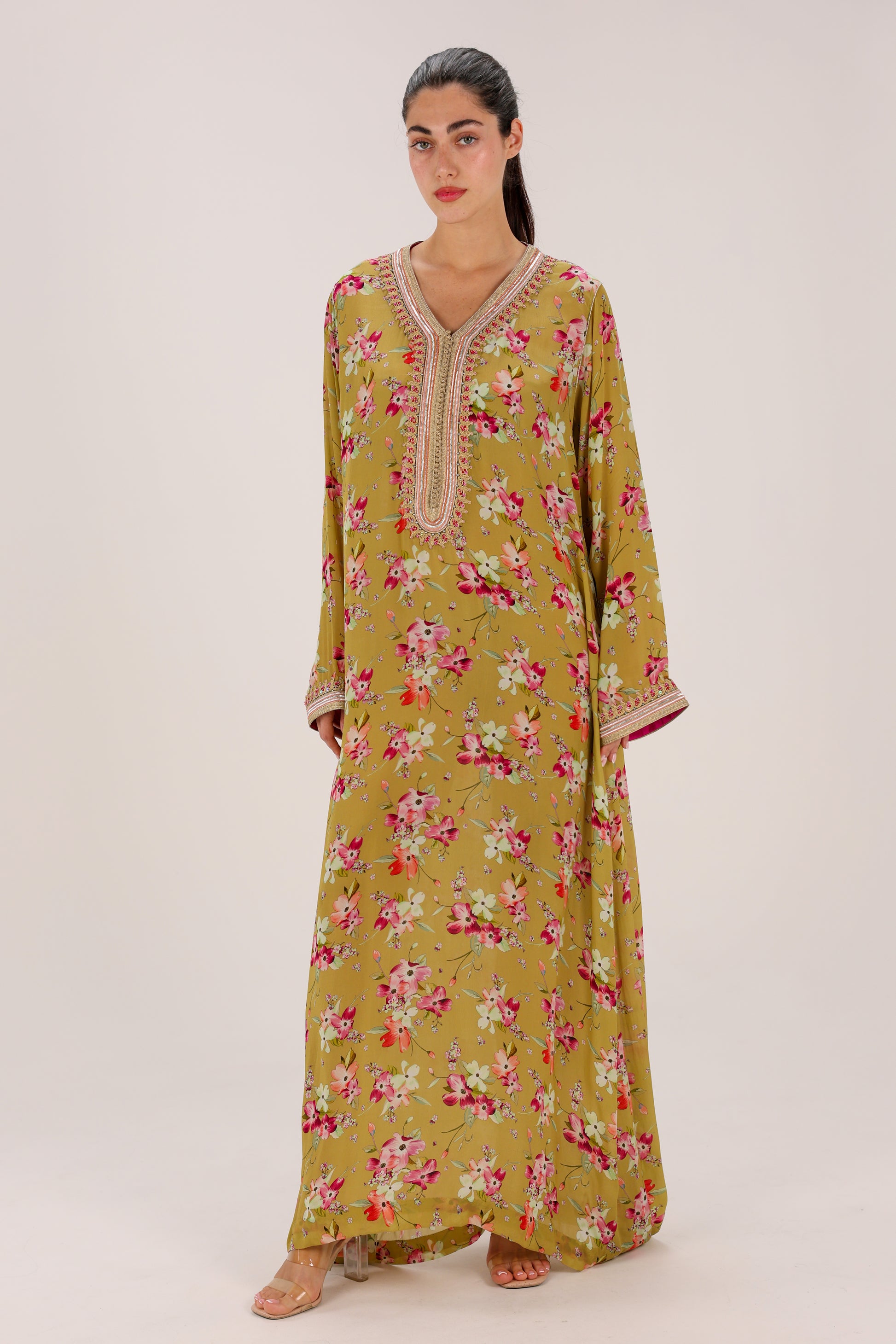 A lightweight, flowing kaftan that blends Moroccan craftsmanship with effortless elegance.